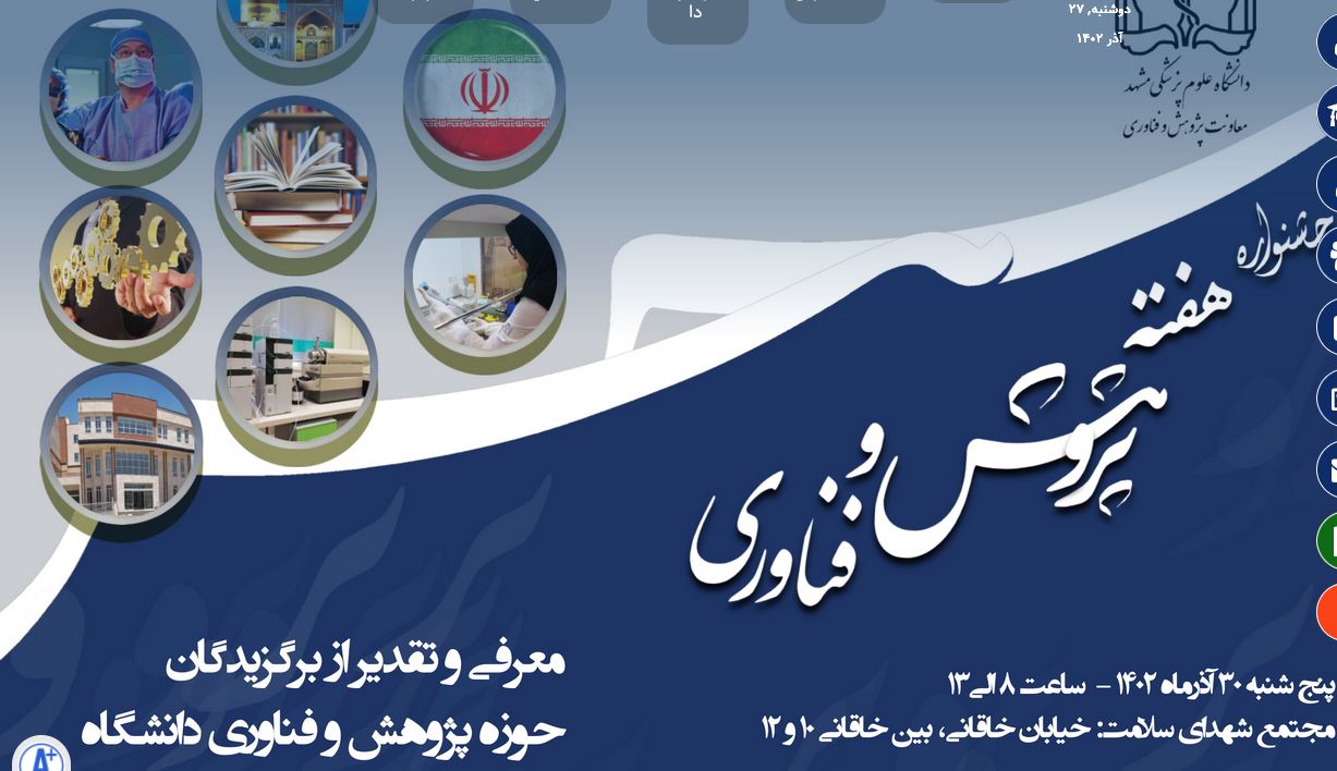 معاون پژوهش و فناوری دانشگاه از پژوهشگران، نخبگان، اساتید و دانشجویان جهت شرکت در مراسم تقدیر و تشکر از پژوهشگران، محققان و منتخبین برتر پژوهشی که در مورخ پنج شنبه سی آذرماه ساعت 9 الی 12 در مجتمع شهدای سلامت دانشگاه علوم پزشکی مشهد برگزار می گردد جهت حضور در همایش دعوت نمود. به گزارش روابط عمومی معاونت پژوهش وفناوری دانشگاه دکتر محسن تفقدی ضمن دعوت از خانواده بزرگ دانشگاه تصریح نمود: برگزاری این مراسم فرصتی مناسب برای توجه و تمرکز بر حوزه پژوهش و فناوری می باشد تا کلیه مسئولین،پژوهشگران، محققان، اعضای هیأت علمی، دانشجویان و کارمندان علاوه بر اطلاع از روند توسعه علم و پژوهش ، برنامه ريزي و اقدامات بهتر و مهم تر را در دستور كار خود قرار دهند. معاون پژوهش وفناوری دانشگاه اظهار نمود : جشنواره پژوهش و فناوری سال 1402، فعالیت های پژوهشی و فناورانه محققین دانشگاه را در محورهای پژوهشگران برگزیده، فناوری و دانشجویی مورد ارزیابی و بررسی قرار داده و به معرفی و تقدیر از برگزیدگان خواهد پرداخت . دکتر محسن تفقدی خاطر نشان کرد : همچون سالهای گذشته، تلاش ما برگزاری با کیفیت جشنواره میباشد و در آخرین روز فصل پاییز منتظر حضور ارزشمند شما در جشنواره پژوهش و فناوری دانشگاه علوم پزشکی مشهد خواهیم بود. |
